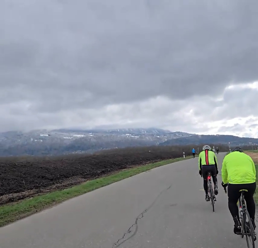Groupe 3 : 7 cyclos dont 2 féminines…Le lac était superbe ce matin, bonne sortie mais frisquet sur le retour.