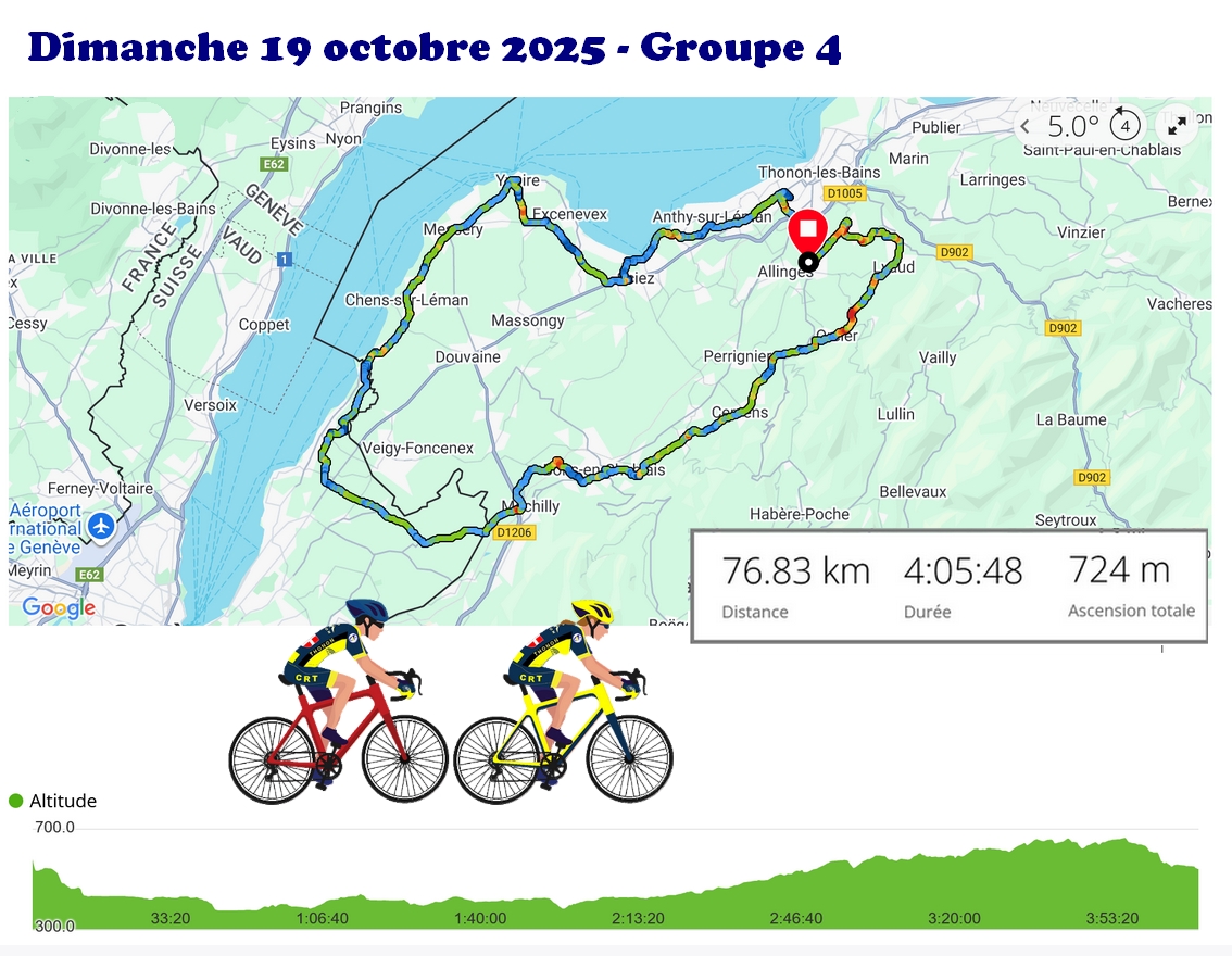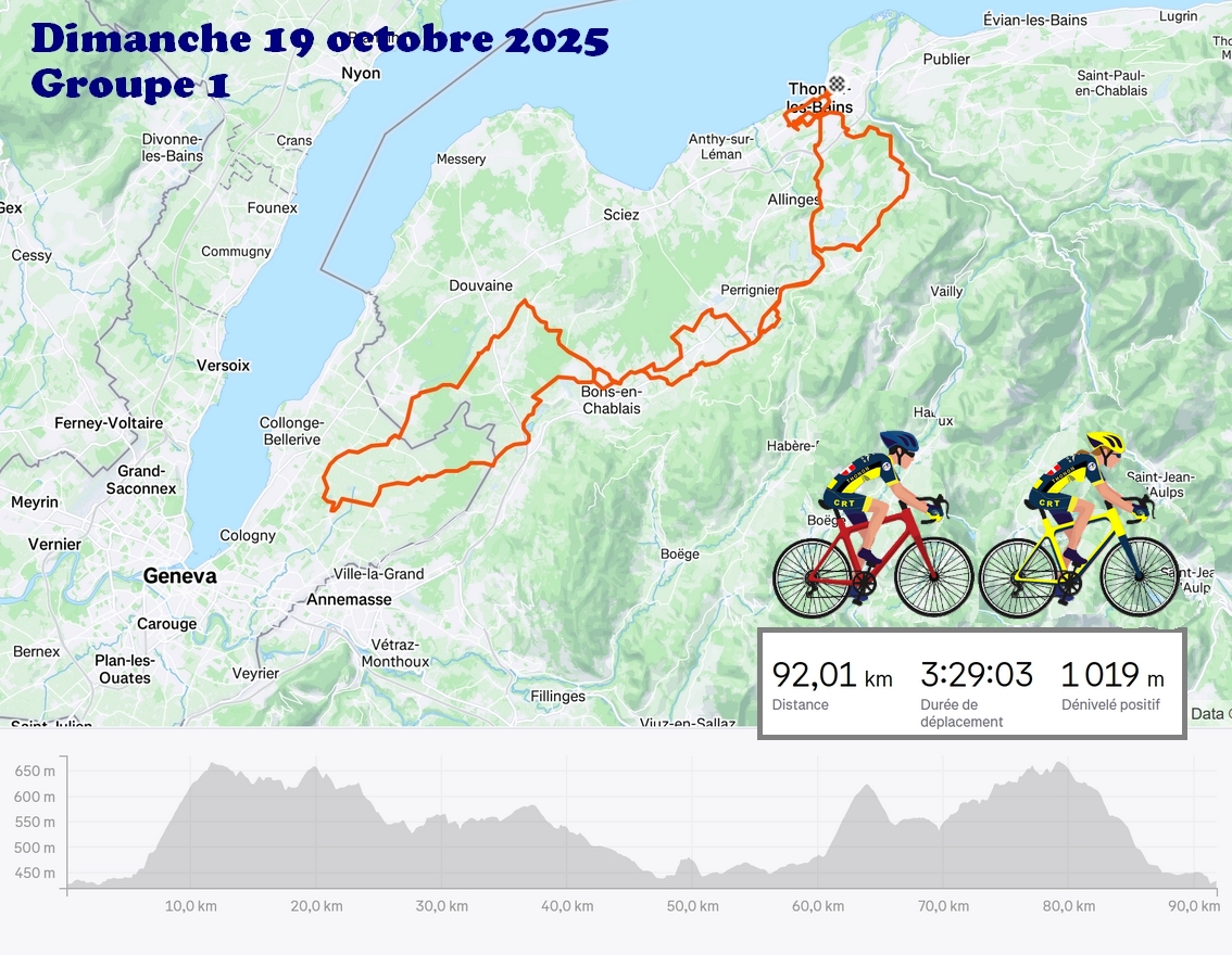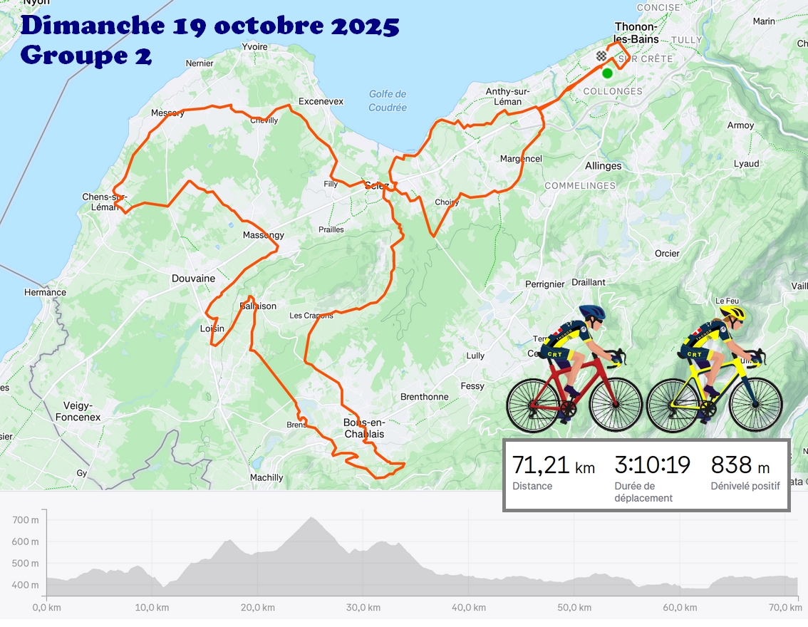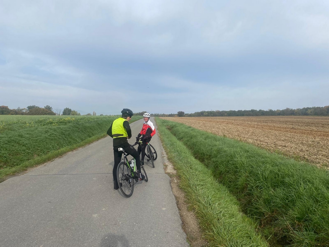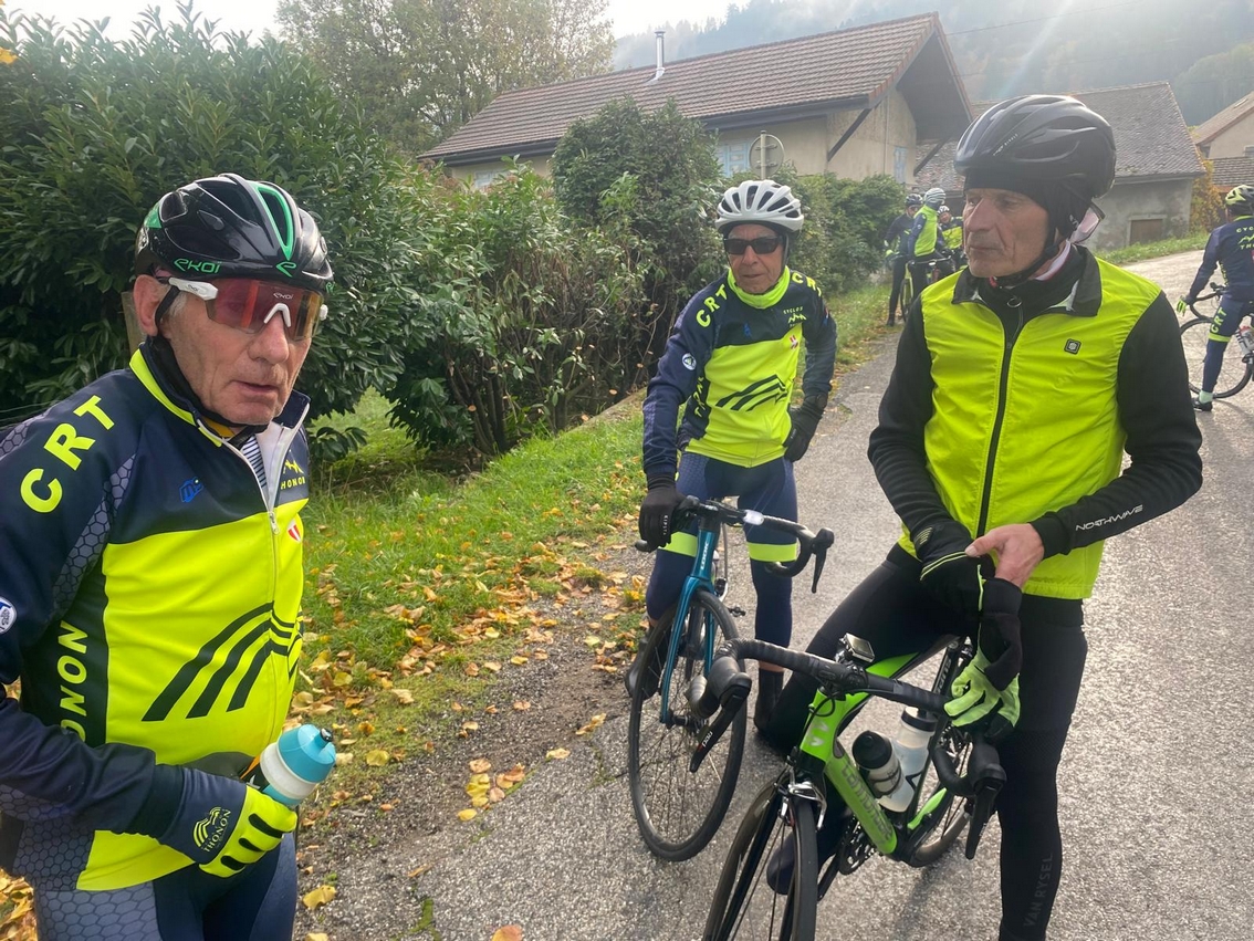 Groupe 1 : 11 cyclos dont 2 féminines. Circuit prévu du calendrier avec quelques variantes. Frisquet au départ, amélioration ensuite. Peu de monde pour le débrief. au café des Sports, seuls 3 se sont arrêtés.