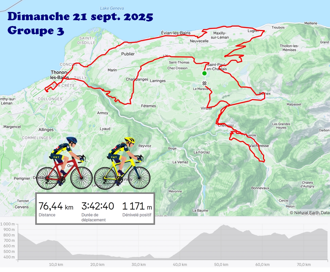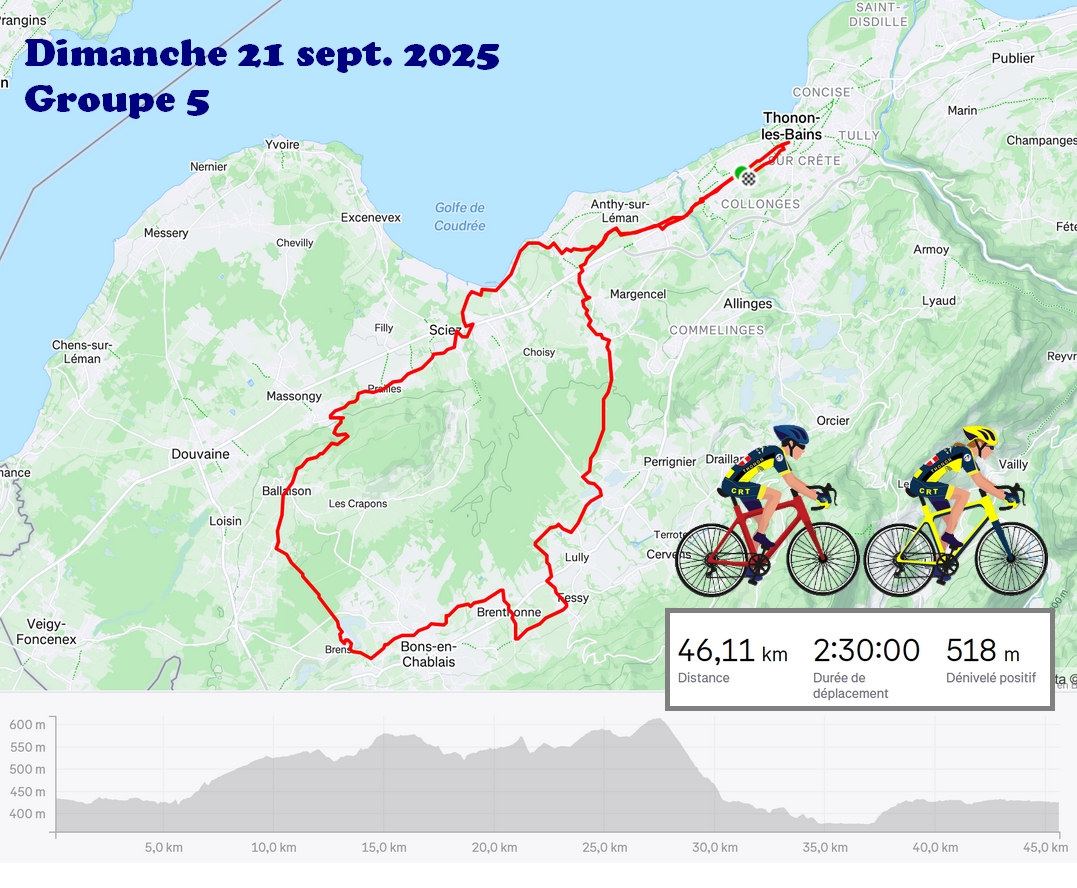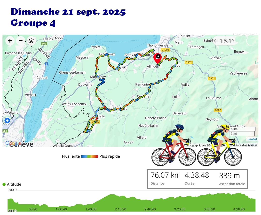 Groupe 4 : Jolie sortie sur le bas chablais avec de bonnes températures. Nous étions 5 dont 2 féminines ! Super entente dans le groupe… les vélos musculaires ont donné la cadence et les deux vélos électriques sont restés derrière, c’était parfait.