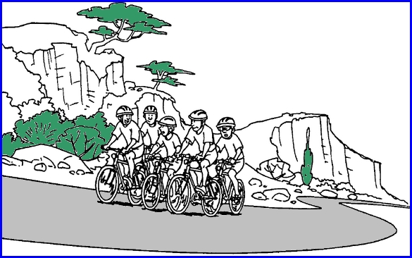 Les cyclistes ne doivent jamais rouler à plus de deux de front sur la chaussée (Article R.431-7 du Code de la route) et doivent se mettre en file indienne dès qu’un automobiliste signale son intention de les dépasser. Ici, les cyclistes sont à trois de front et discutent entre eux et ne s’occupent pas de la circulation = danger ! -